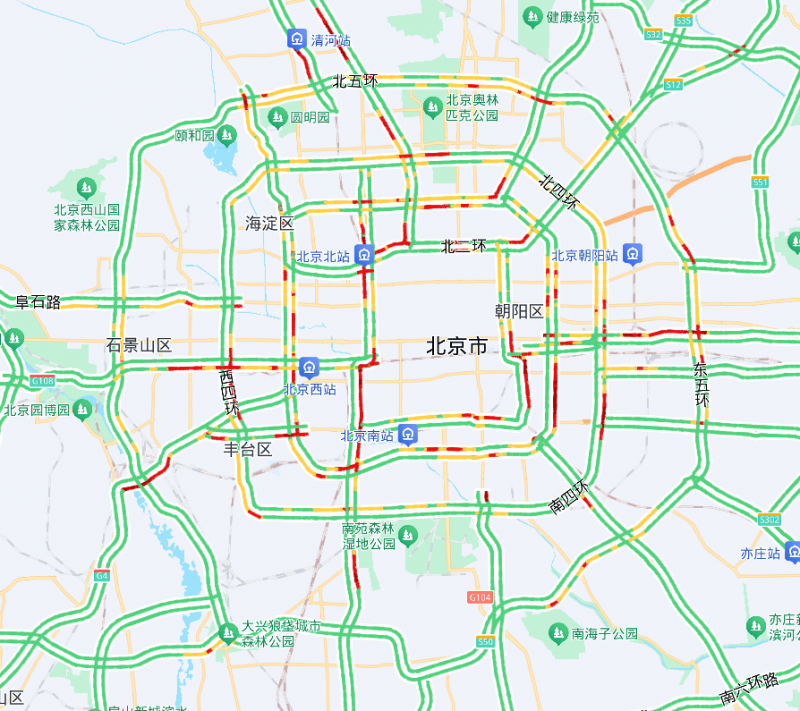 晚高峰期间,城区东部、西部、北部环路部分路段,圆明园西路等联络线出城方向部分路段,京藏、京开、京港澳、京通快速等高速公路出京方向部分路段可能出现短时车流量大的情况。春运返京客流持续高位,八站两场周边道路和停车场出入口易出现短时交通压力集中的情况,请市民注意行车安全。