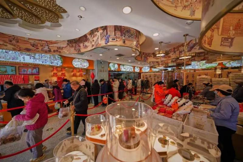 菜百推出的“小马多多”“马”上有钱等足金饰品销售火爆,北京同仁堂滋补礼盒融合“送健康”理念与新春祝福,深受消费者喜爱。紫光园、便宜坊、全聚德等老字号与特色餐饮企业协同发力,“以美味载美意,从餐厅到客厅”,推出年夜饭套餐、社群互动福利、特色美食礼盒等活动,满足了家庭团聚的不同需求。