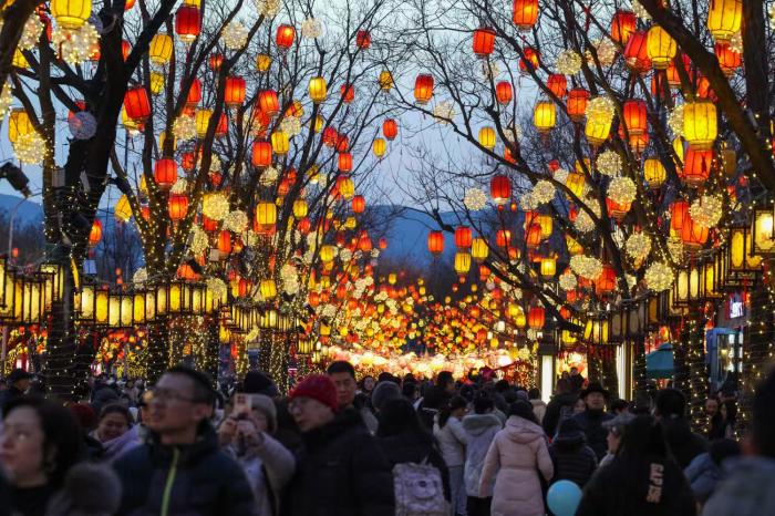 看北京|元宵佳节临近,同庆街新春彩灯璀璨如昼