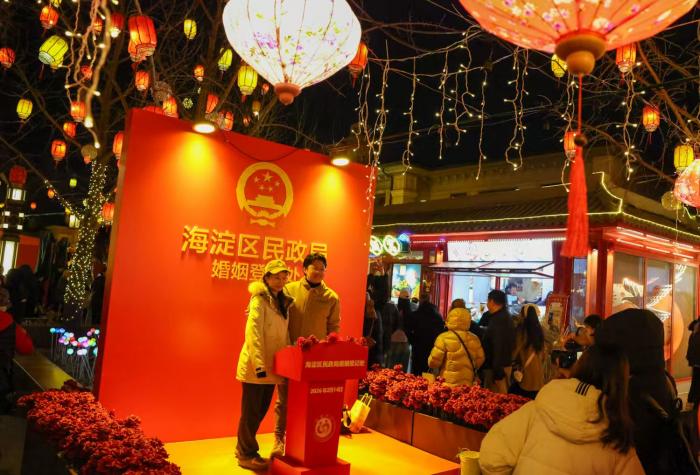 海淀文旅集团与海淀区民政局联合推出“同喜同庆,以花为媒”主题领证活动,届时通过预约的新人将能在同庆街上设立的婚姻登记点领取自己的结婚证。