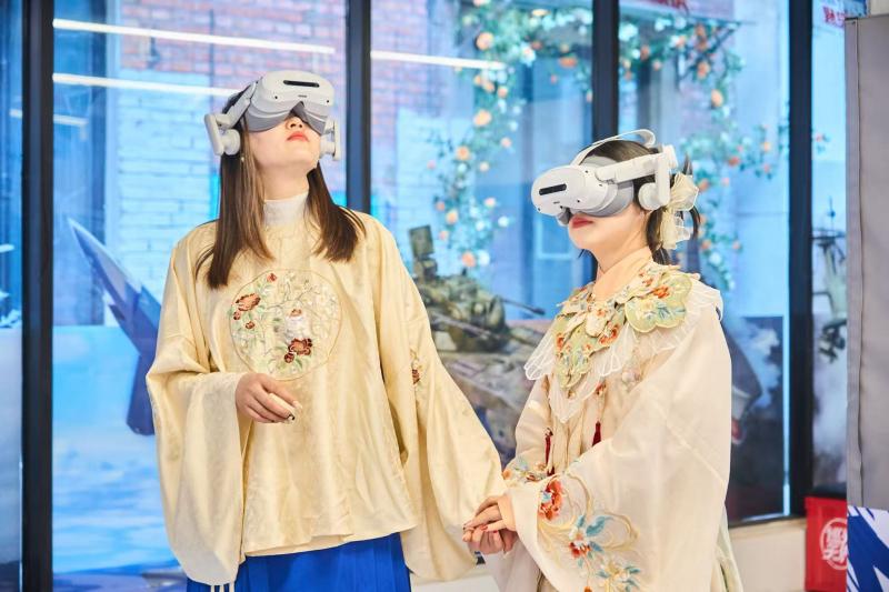 7.8文化中心的新春数字万象游园会里,科技与文化的融合尽显现场魅力。身着汉服的游客手持VR设备,沉浸式体验78米全景数字长卷,一键“穿越”中轴线七百年历史;一旁的“何以文明”VR体验展前,游客驻足体验三星堆、二里头等文明遗址的数字还原场景,天弈计划国防军事科普VR大空间也吸引了不少观众打卡,在光影流转中触摸文明根脉、学习科普知识。