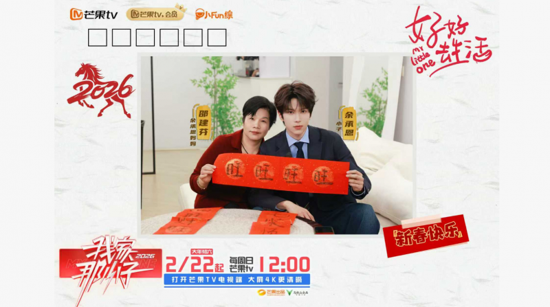 《我家那小子2026》2月22日(大年初六)起每周日12:00在芒果TV正式播出。本季节目首发阵容邀请了四位性格迥异、鲜活真实的95后青年:蒋敦豪、余承恩、王瀚哲、夏之光,他们以真实的生活切面碰撞出多元火花,为观众解锁当代年轻群体的成长图鉴。