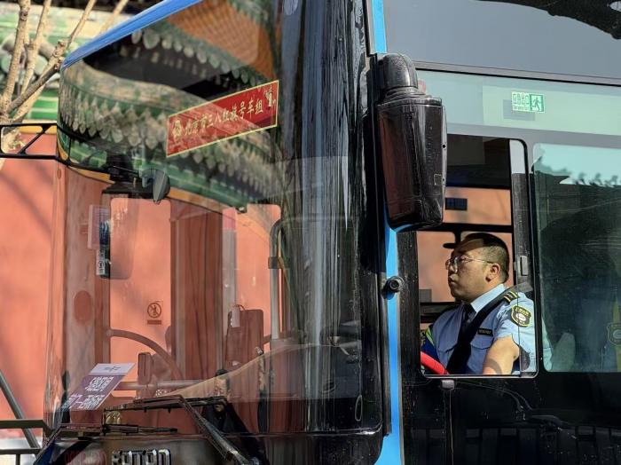北长街附近的一名公交司机正在驾车。