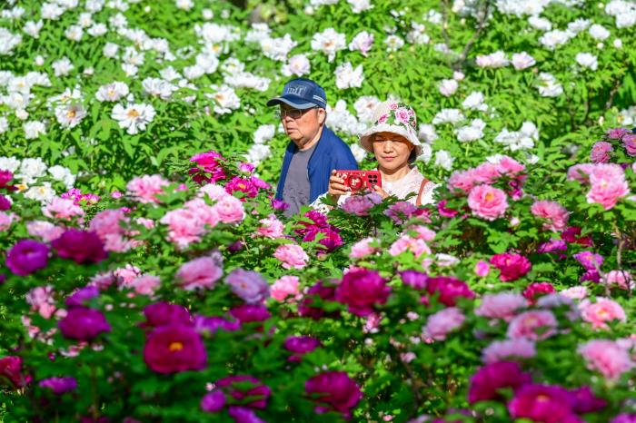 4月4日,游客在河北省石家庄市植物园赏花游玩。新华社发(陈其保摄)