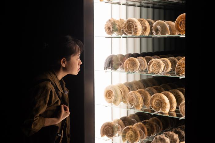 朱利安·夏西埃作品,《螺旋经济》。艺术家将古代海洋的遗骸菊石装进传统售货机内。