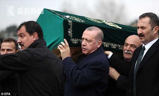 当天,埃尔多安还参加了9名遇难者的落葬仪式,并亲自抬棺送行。