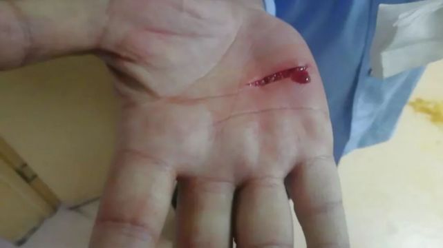 在确保孩子安全后,张金如这才发现,自己的右手手掌,已经在刚刚的夺刀过程中被划出了一道近5公分长的伤口,鲜血直流。