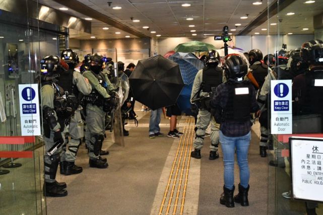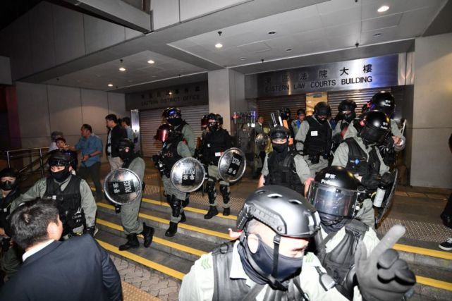 为此,香港警方针对该局面部署了再度拘捕行动。据香港“东网”消息,当时大批防暴警察抵达东区法院外,有部分进入大楼地下,气氛一度紧张。晚上20时许,有3名被控男子在其同伙撑伞遮蔽下离开法院,随即登上警车。据了解,警方较早前也已带走另2名疑涉案人士,他们当庭释放后于法庭外再次被捕。据悉,案件将尽快重新提讯。