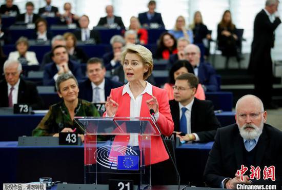 7月份的换届选举中,冯德莱恩原本并非候选人,但在两位“领衔候选人”纷纷出局、各方僵持不下之际,她的出现成功使各方“让步”。最终,她在747名欧洲议员中,获得383票支持,以微弱优势“涉险”过关。