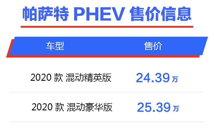 2020款帕萨特PHEV上市 2款车型/补贴后售24.39-25.39万元