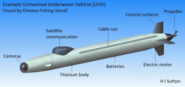 中国渔船捕获的无人潜水器示意图