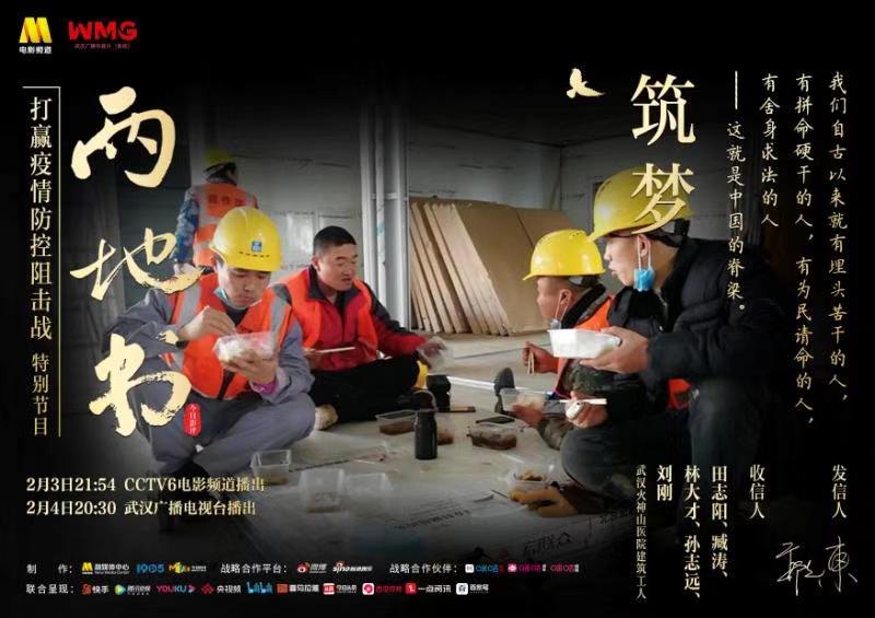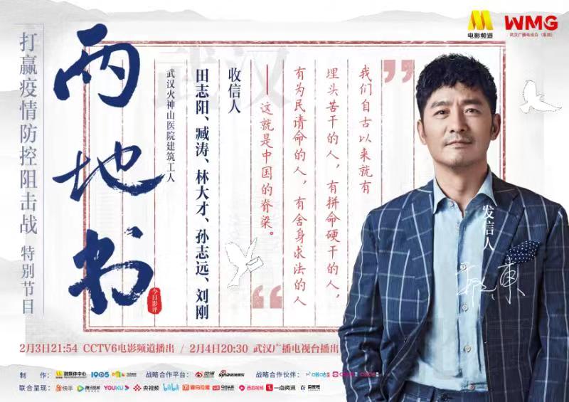 一则发生在疫区的感人故事,一封来自北京的暖心信件;抗疫一线的真实主角,与满怀挂念的电影人,相隔两地却始终用爱穿越距离、心心相连。2月3日起,由CCTV-6电影频道和武汉广播电视台联合出品、《今日影评》栏目组紧急制作的打赢疫情防控阻击战特别节目《两地书》,将于每周一至周五晚22:00档在电影频道暖心播出,并将在次日晚20:30在武汉广播电视台播出。朱一龙、郭晓东、林永健、李光洁、刘佩琦等深怀感念的电影人,即便与各行各业的英雄们身隔两地,却还是纷纷写下各自心声。2月3日21:54,由郭晓东率先寄出的《两地书》,将献给主动请缨建设武汉蔡甸火神山医院的山东兄弟。