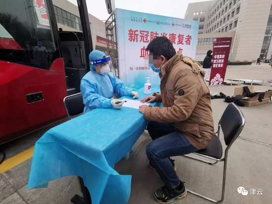 2月20日下午,天津市新冠肺炎康复者恢复期血浆采集在天津市海河医院进行,一位29岁的新冠肺炎康复者捐出400毫升“抗疫”血浆,成为天津市首位新冠肺炎康复者血浆捐献志愿者。这位血浆捐献志愿者出院后一直关注疫情动态,当得知康复血浆捐献在天津开展后,他便立刻提出要捐献血浆,他表示,“我虽然不是(天津)第一个出院的,但是我希望我是(天津)第一个为疫情做贡献的!”