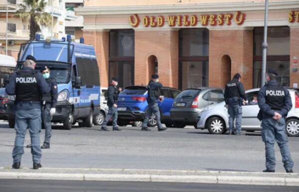 3月21日,在意大利罗马附近的奥斯蒂亚,警察在道路上执勤 新华社发