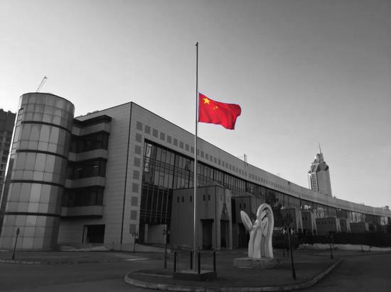 中国驻哈萨克斯坦大使馆降半旗
