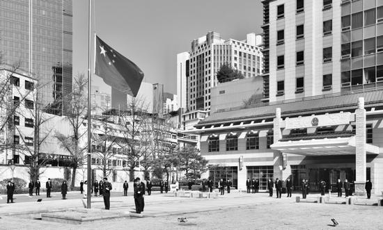 中国驻韩国大使馆降半旗