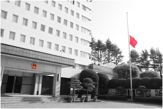 中国驻日本大使馆降半旗