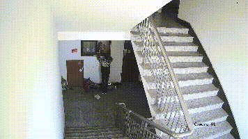 正对菁菁家门的摄像头拍下了过程。陈某进屋没多久,菁菁开门进入,十几秒后,陈某小跑出门,菁菁双手叉腰站在门口,严肃地盯着他下楼。