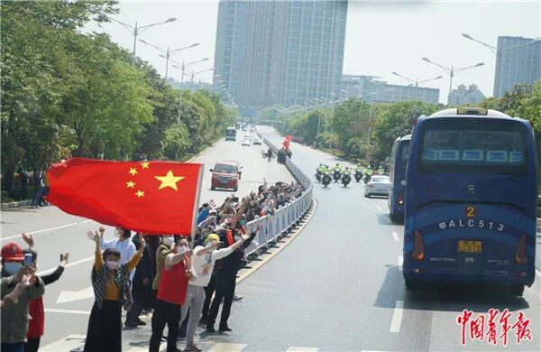 泪目!武汉市民扛国旗追车送别最后一批返京援鄂医疗队