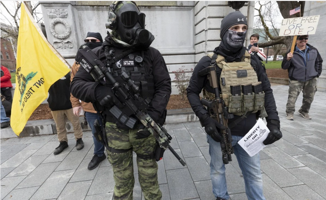 新罕布什州部分持枪抗议“封城”的示威者 图源:美联社