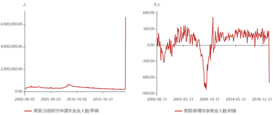 3月28日公布的美国申请失业金人数超过660万,同比增加3158%,3月31日公布的新增非农就业人数-70.1万,接近2008年金融危机,随着新增岗位的快速消失,预计非农就业人数还会进一步下跌。