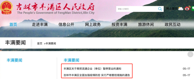 刚刚,根据丰满区商务局发布的通告,自明天(5月18日)零时起,对丰满区内商贸流通企业(单位)暂停营业: