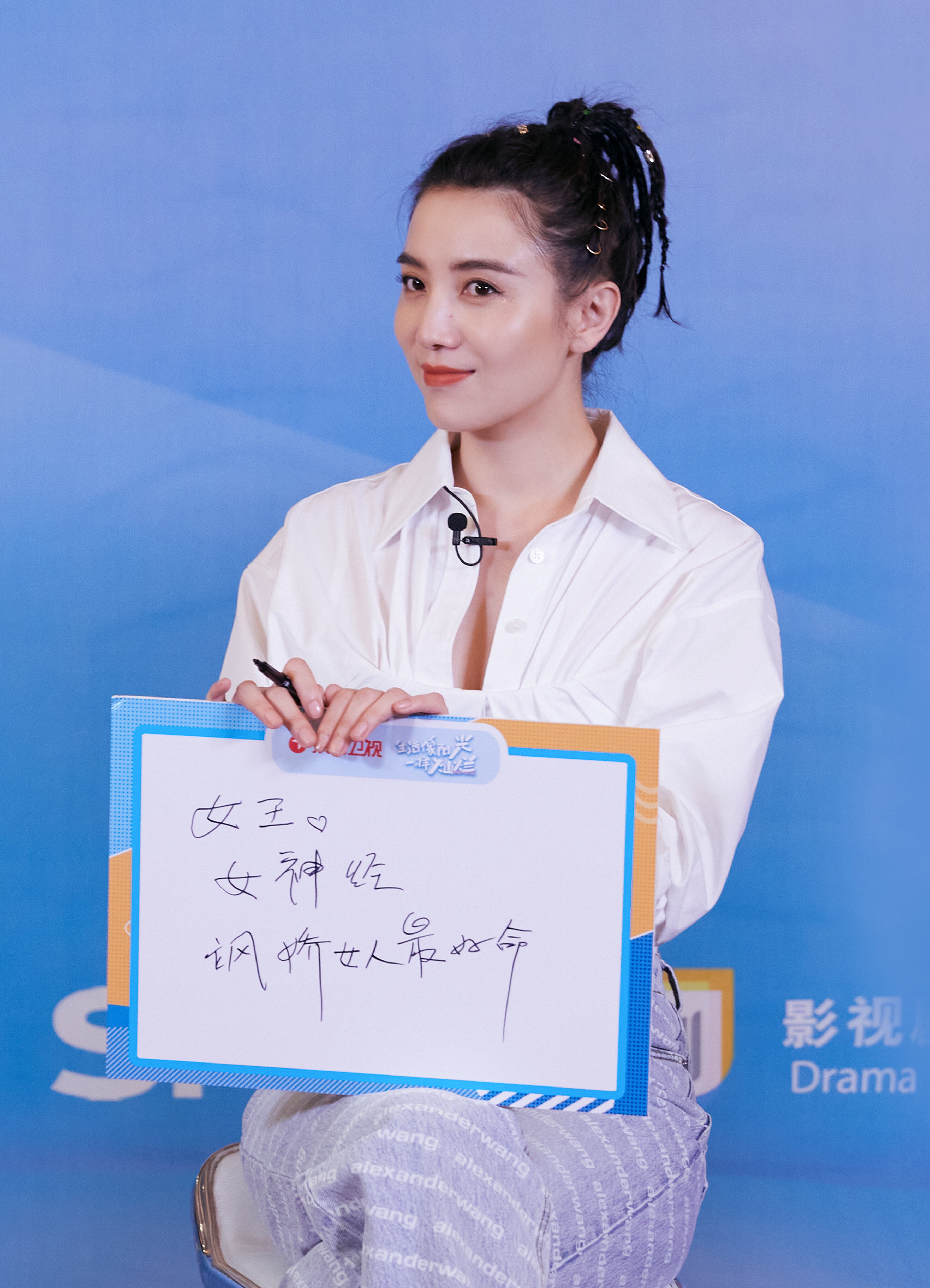 直播现场,主持人要求两位主演在题板上写出角色的三个关键词。宋佳给出的是:女王、女神经,“飒娇女人”最可爱。她解释道,“白灿烂职场上是女王,回归家庭又很可爱,是小娇妻。对人物的这点很认同,女性工作上要飒,情感上要像女人。”而袁弘对赵阳光的定义则是:高智商、低情商,求女儿。“智商比我高20倍,情商比我低20倍,不依不饶想和白灿烂生个女儿。”为了让白灿烂生女儿,赵阳光想出了各种招。现场送给宋佳的一个大肘子抱枕道具就和生孩子有关。剧中和赵阳光统一战线的丈母娘给了他一个生女儿的秘方,因为白灿烂喜欢吃肘子,赵阳光就把药下在肘子上让她吃,让白灿烂十分生气。