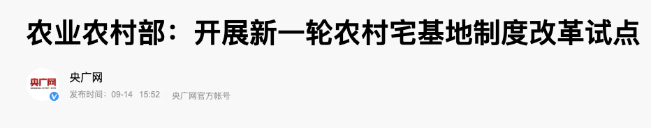 9月12日,农业农村部方面称,在符合农村宅基地管理规定和相关规划的前提下,允许返乡下乡人员和当地农民合作改建自住房。
