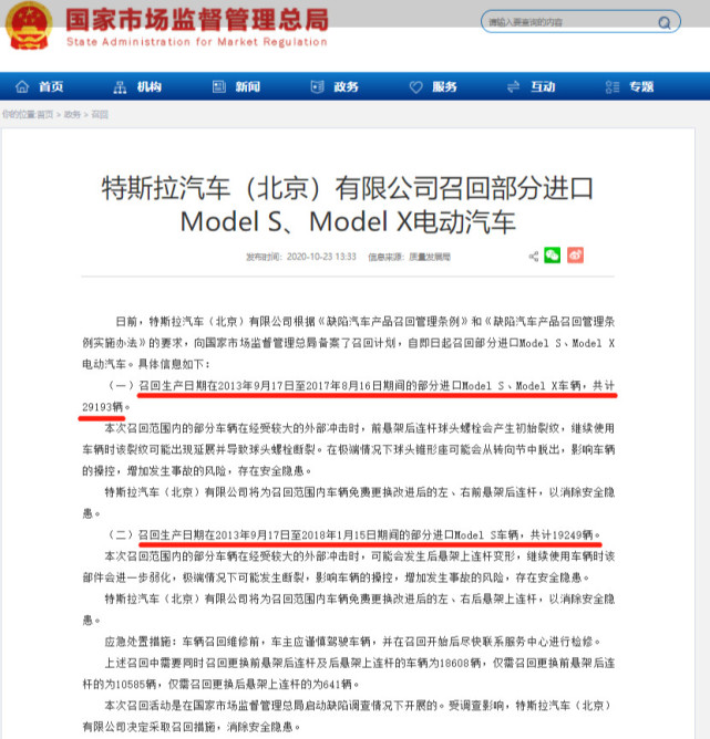 10月23日讯,市场监管总局通告,特斯拉汽车(北京)有限公司召回部分进口Model S、Model X电动汽车。