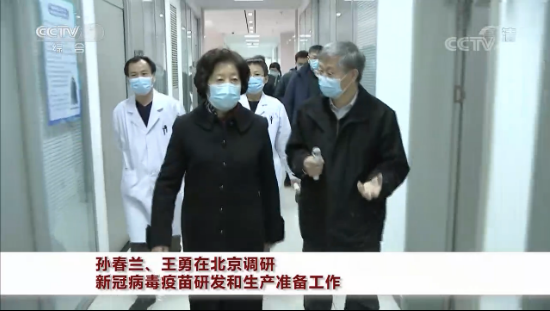 央视报道称,孙春兰、王勇实地考察中国食品药品检定研究院、北京科兴公司、国药中生北京公司。