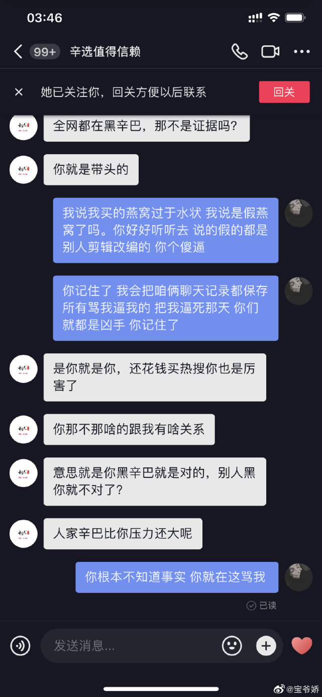 网友发视频吐槽辛巴团队推广燕窝遭网络暴力 半夜接到骚扰电话被威胁恐吓