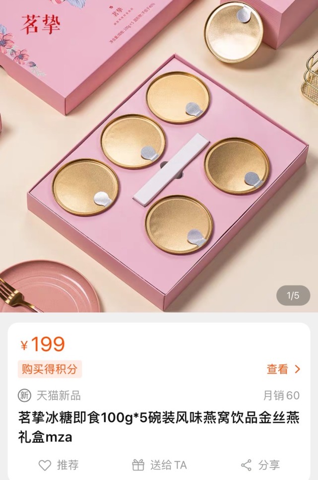 北青-北京头条记者注意到,上述网友的订单中,该款燕窝被描述为“小金碗碗装燕窝冰糖即食燕窝”,但目前该店铺对该款燕窝的描述是“茗挚冰糖即时碗装风味燕窝饮品金丝燕礼盒”。