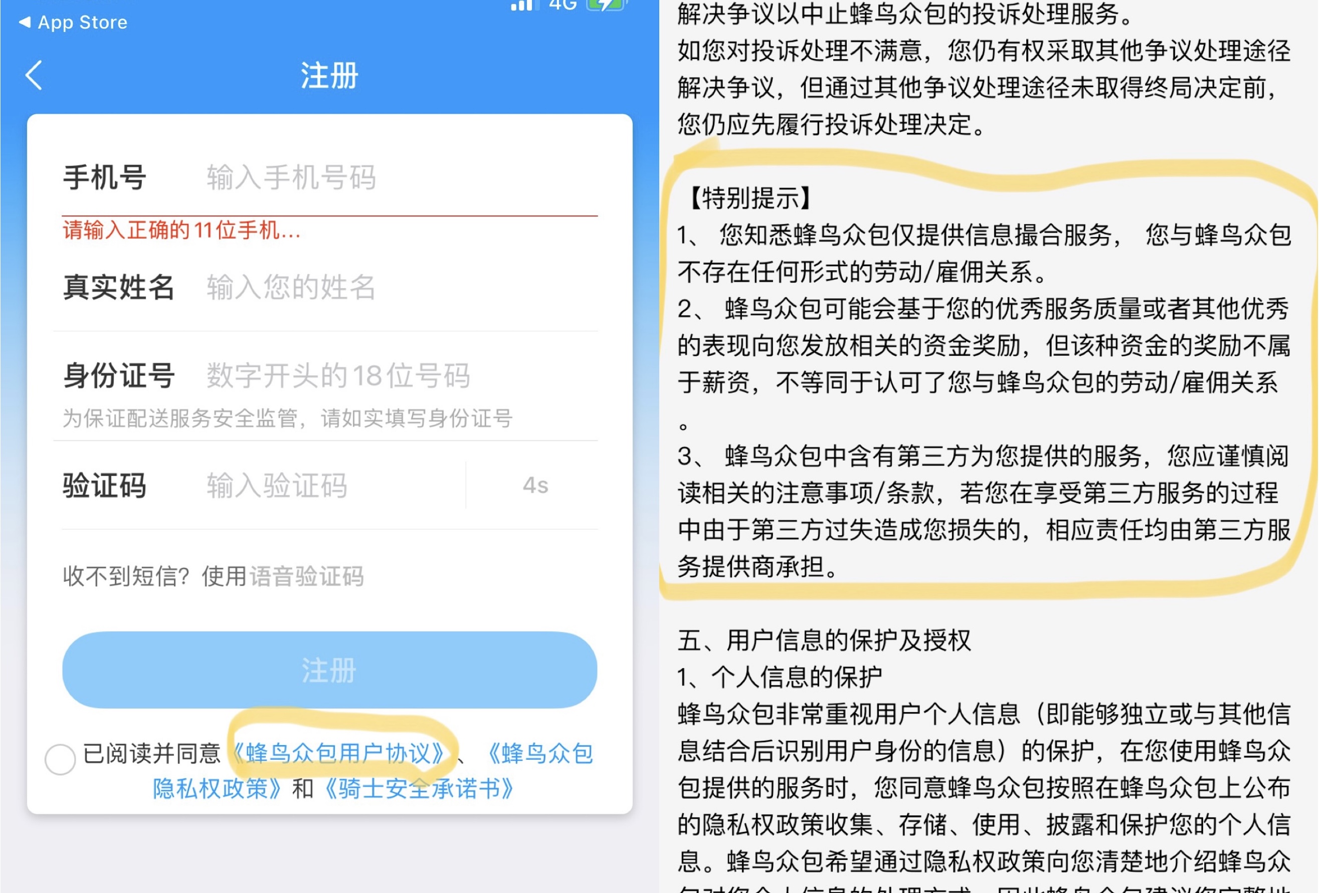 “我哥和嫂子都是小学文化,而且从农村出去的,他们不懂这个。而且平台的条条框框太多,他的法律意识也淡薄。他想着能在这个平台注册工作挣钱,但是他不知道有这个条款。”韩明说。