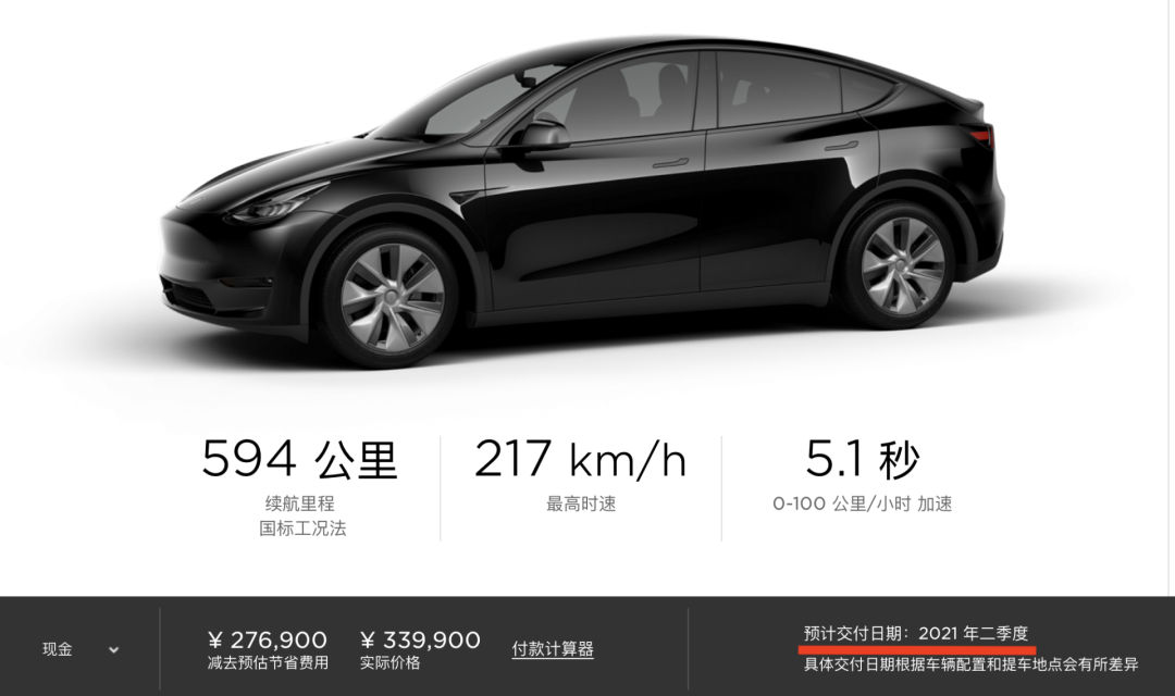 特斯拉官网所显示的Model Y交付时间,已经由一季度悄然调整为二季度,此时距离这款车上市,只有短短一周时间,其订单火爆可想而知。
