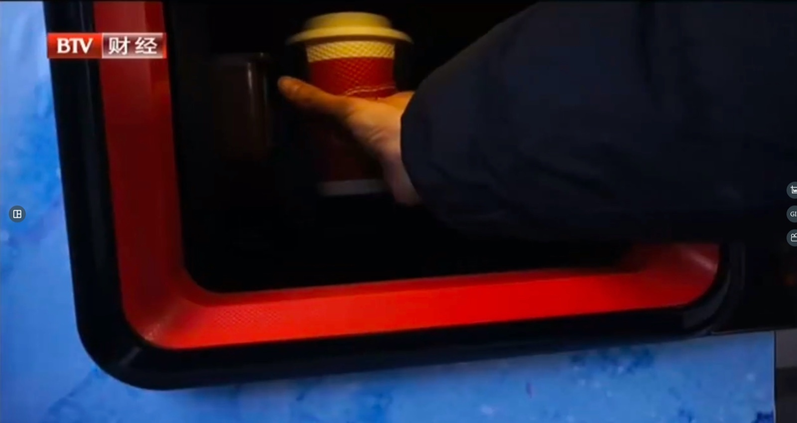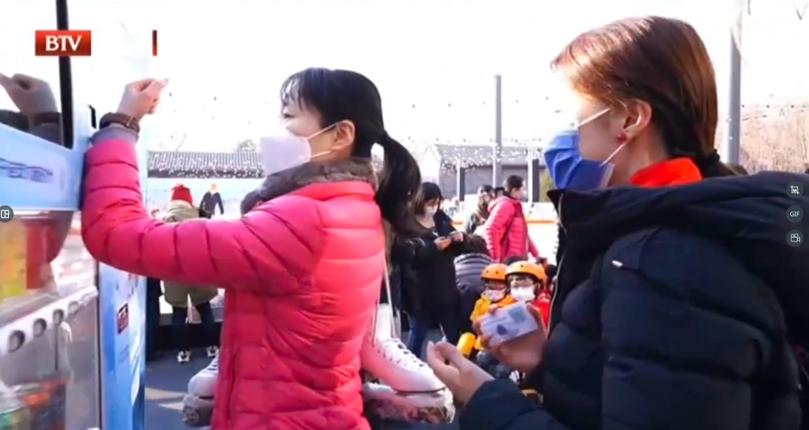 在王府中环滑冰世界,记者李杰与冰雪运动爱好者一起体验用智能手表,在自动咖啡售卖机上购买饮料。最大的感觉就是,挥一挥手表,咖啡立马拿走。