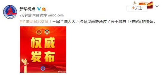 十三届全国人大四次会议表决通过了关于政府工作报告的决议