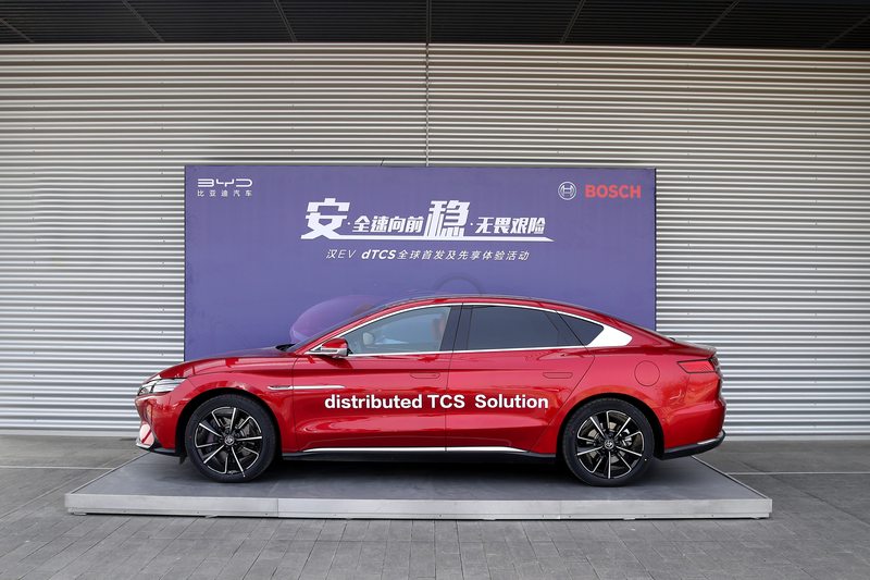 3月30日,比亚迪与博世共同宣布,双方联合开发,专为新能源汽车打造的驱动力控制系统dTCS正式在汉EV四驱版车型上全球首发,汉EV四驱版在应用dTCS后,可显著减少车轮打滑量,提升了整车的安全性、高效性、操控性和舒适性。