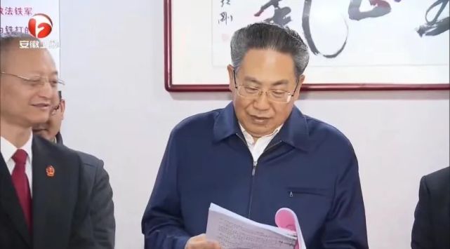 3月24日,安徽省委书记李锦斌去了合肥市庐阳区人民法院。和李锦斌一同调研的还有安徽省委常委、省委政法委书记张韵声,安徽省高院院长董开军等。