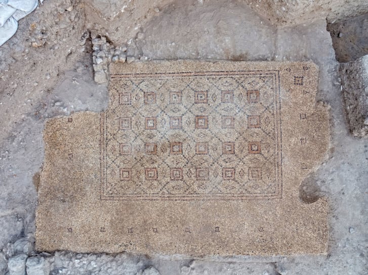 以色列发现1600年前马赛克地砖:几何图案 色彩清晰