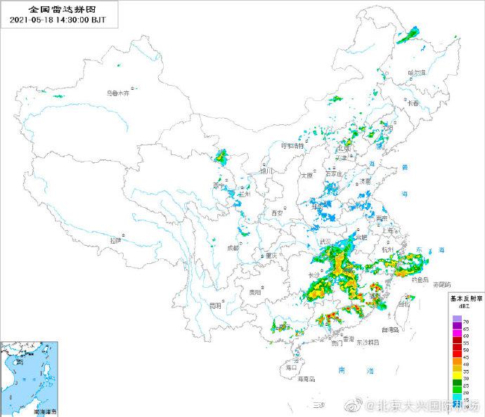 今日(5月18日),因中南地区持续雷雨天气,大兴机场往来广州、珠海、宁波、南宁、厦门等地的航班受到当地天气或航路天气影响,截至14时,大兴机场因外站雷雨天气原因累计取消出港航班30架次,延误航班26架次。大兴机场协同华北空管、各航空公司及相关保障单位,全力做好航班运行、旅客服务保障等工作。请出行的旅客及时关注天气变化和所乘航班动态,以免耽误行程 。