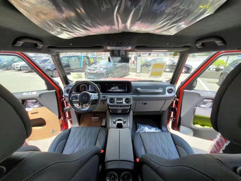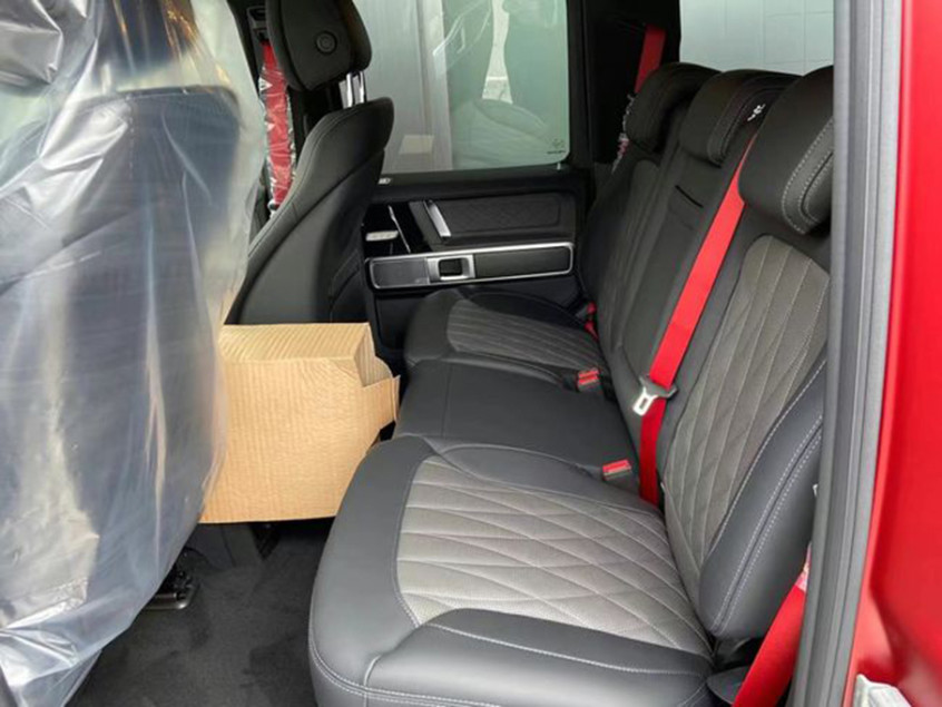 内饰方面,2021款奔驰G500整体风格与在售车型一致,整体采用灰黑双拼内饰,此外贯穿双联屏、三辐多功能方向盘也应有尽有,同时我们注意到2021款奔驰G500采用了黑灰双色Exclusive Nappa真皮包裹座椅,并配备了红色安全带。