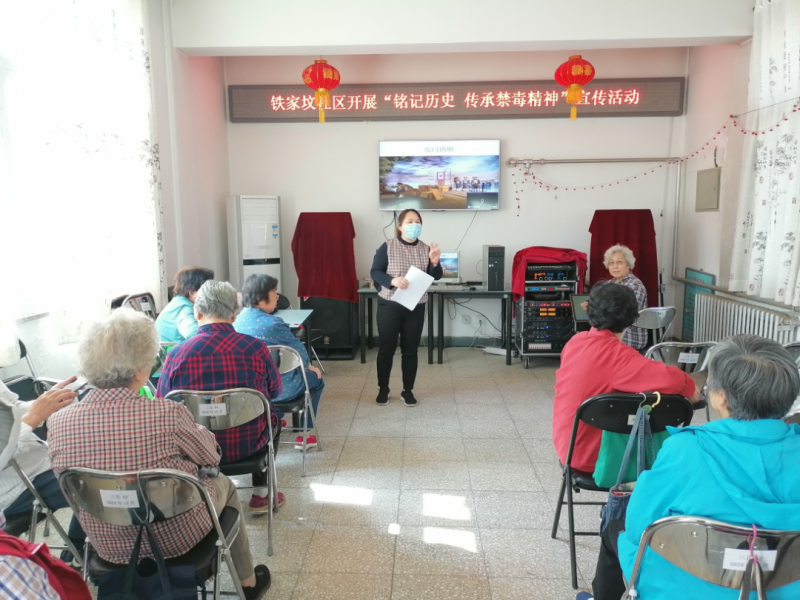 铁家坟社区开展了6·3虎门销烟纪念日宣传活动,社区工作人员和社区民警一起,在社区的主干道上,向居民发放宣传页,同时组织社区居民在社区活动室开展知识宣讲,社区工作人员向居民们讲解了虎门销烟的历史事件和禁毒相关法律法规, 详细生动地介绍了毒品对个人、 家庭及社会造成的严重危害, 引导居民时刻保持警惕,远离毒品, 号召广大居民树立“珍爱生命、 拒绝毒品” 的正确观念,共同创建无毒社区。
