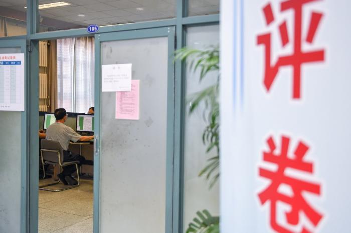 6月16日,在东北师范大学,工作人员在进行阅卷。