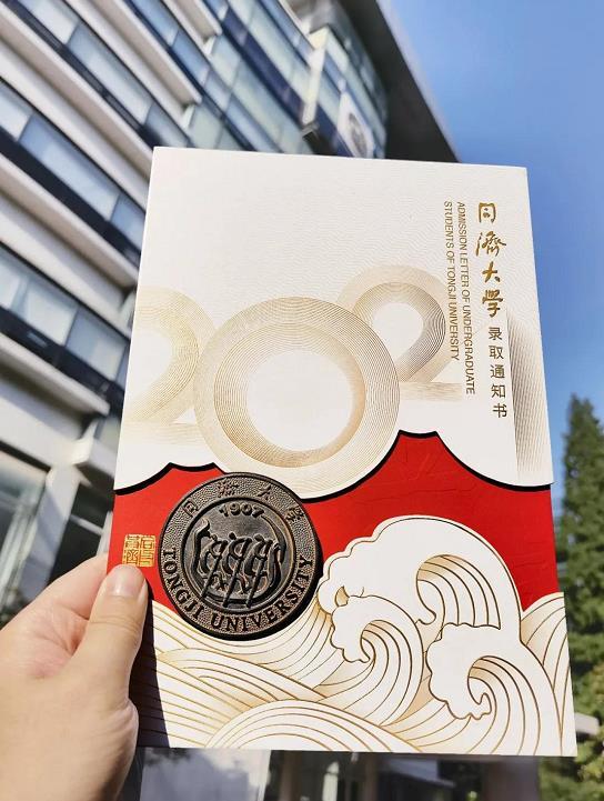 据悉,在2021年录取通知书的设计理念中,团队坚持环境友好的理念,尽可能使用回收材料,在低碳制造、包装减量化的努力中,也坚持了每一毫米的努力。希望每本录取通知书经过上百道印、装工艺的锤炼,成为同济人的回忆。
