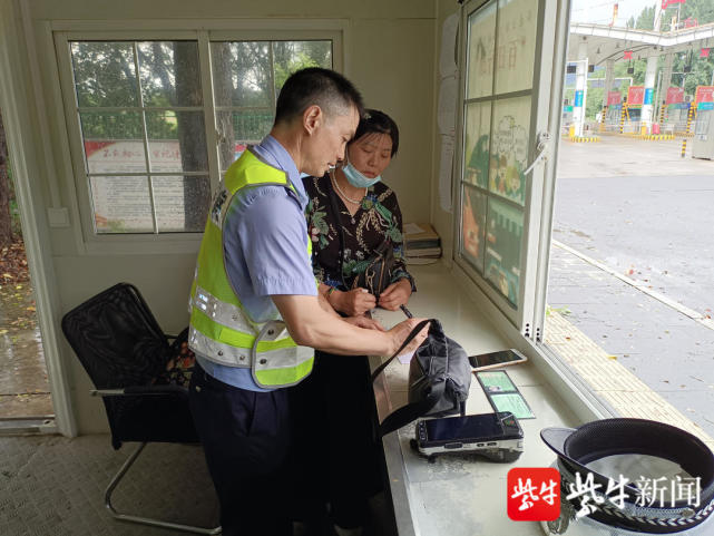 正在镇江南执法站值守的民警应福台,接到指令后,立即带领辅警在收费站出入口设置卡口,做好拦截准备。9时左右,苏L92265大客车驶入镇江南匝道,被成功拦截。民警向驾驶员陈某说明情况后,要求其一起对车上行李进行检查。而当检查到车上一女性乘客郭某时,发现了一只小黑包,不属于该乘客。