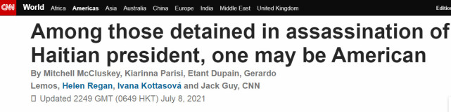 美国有线电视新闻网(CNN)刚刚援引一名政府高官的话称,涉嫌暗杀海地总统的六名嫌疑人中的一名据信是美国公民。
