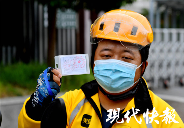 王鑫今年36岁,是美团外卖的一名小哥。疫情发生后,和其他人一样,王鑫家的小区管理日渐严格。他有邗江区新冠肺炎疫情防控工作指挥部盖章的通行证,作为物资保障人员,可以每天从家里出来上班。