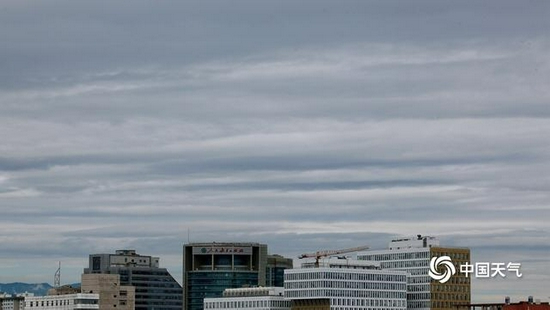 北京雨后现“千层云” 层层叠叠犹如水墨画