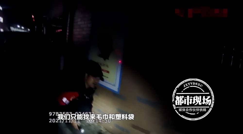 为了防止发生危险,民警赶紧找来毛巾和塑料袋,想办法堵住破口,但是因为管道内气压较大,光用毛巾和塑料袋堵不住,只能用手一直按着。