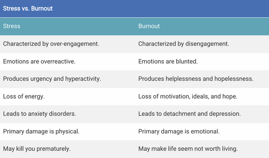 压力与职业倦怠的区别 图片来源:helpguide.org